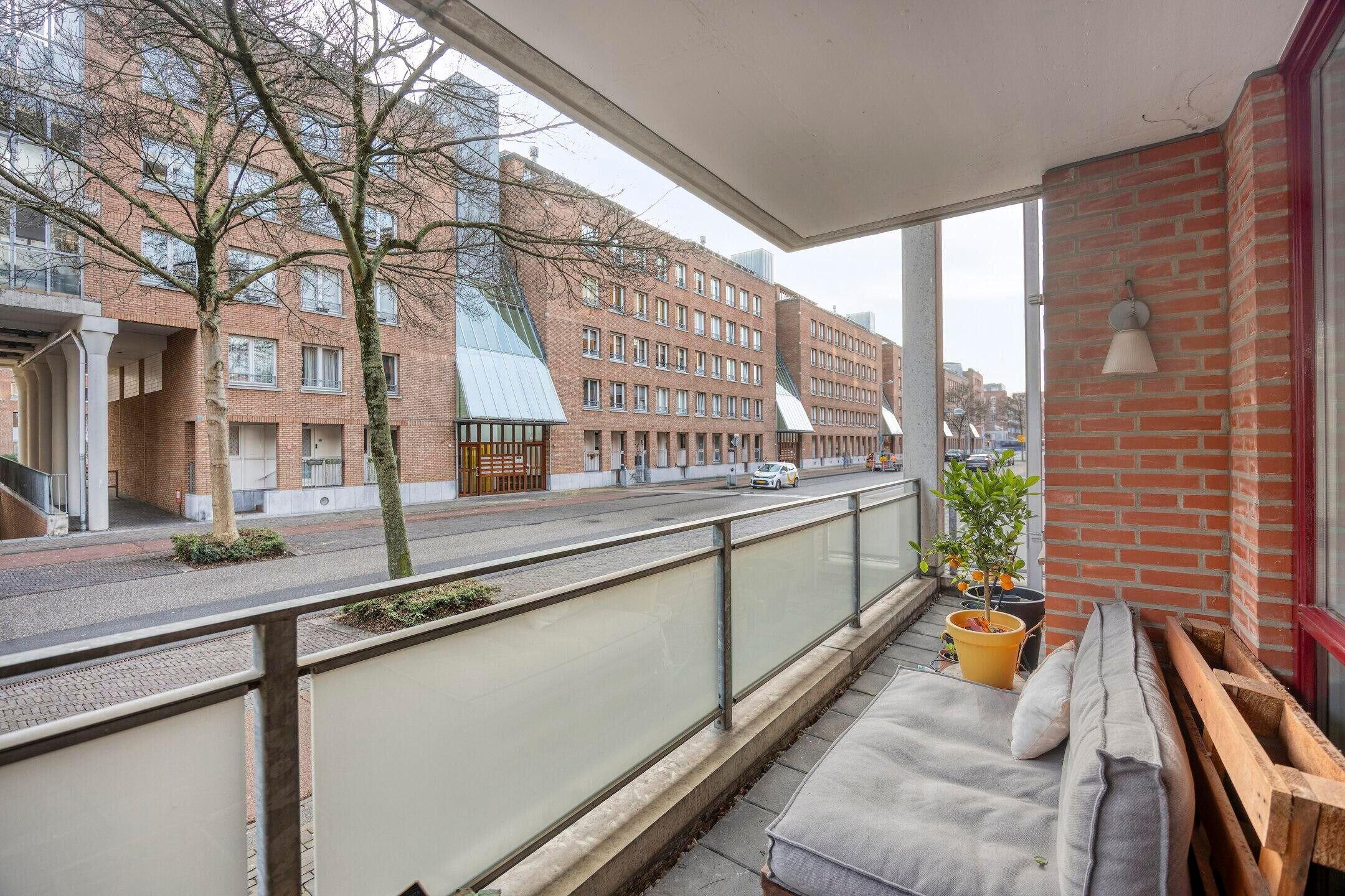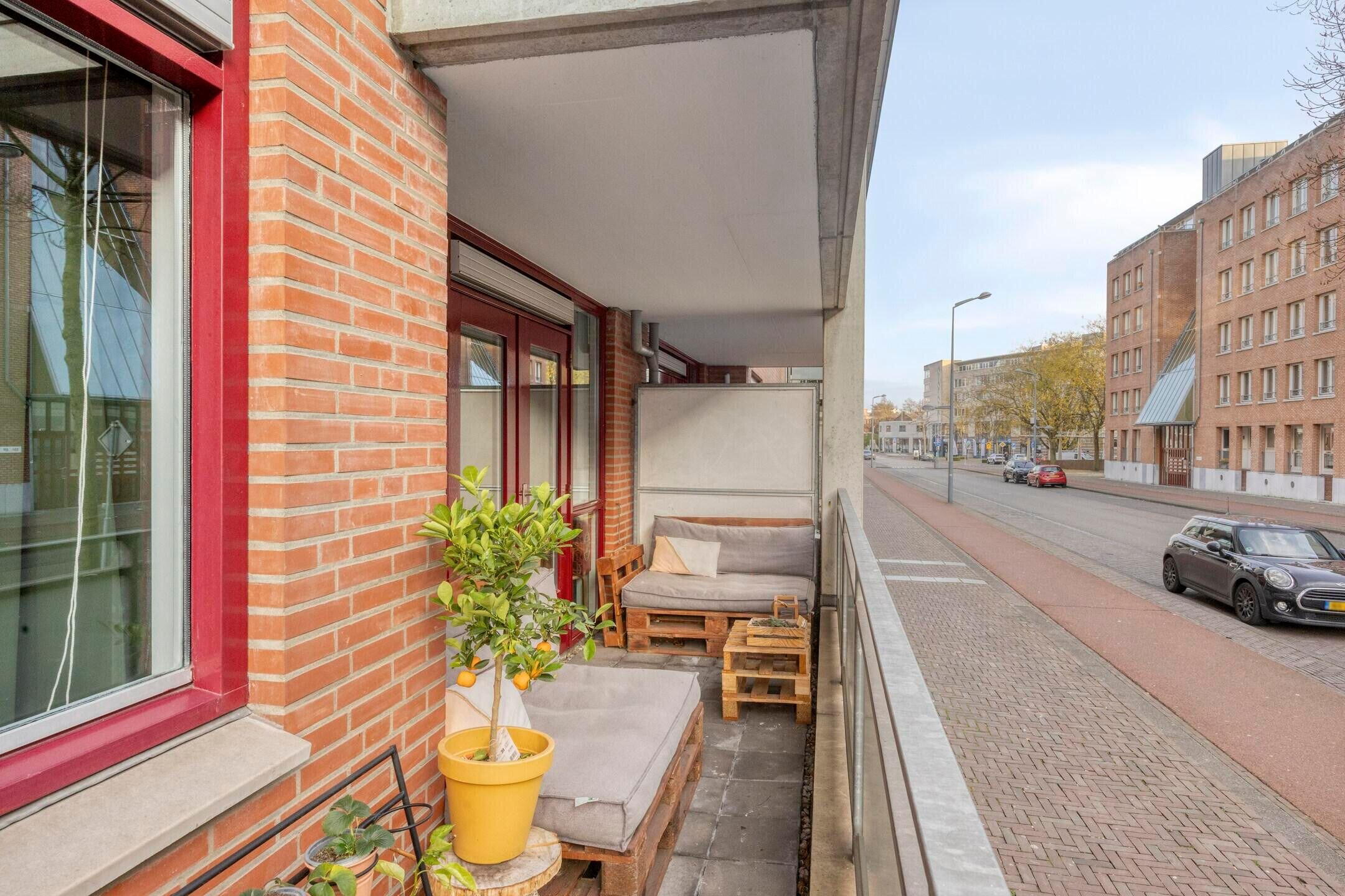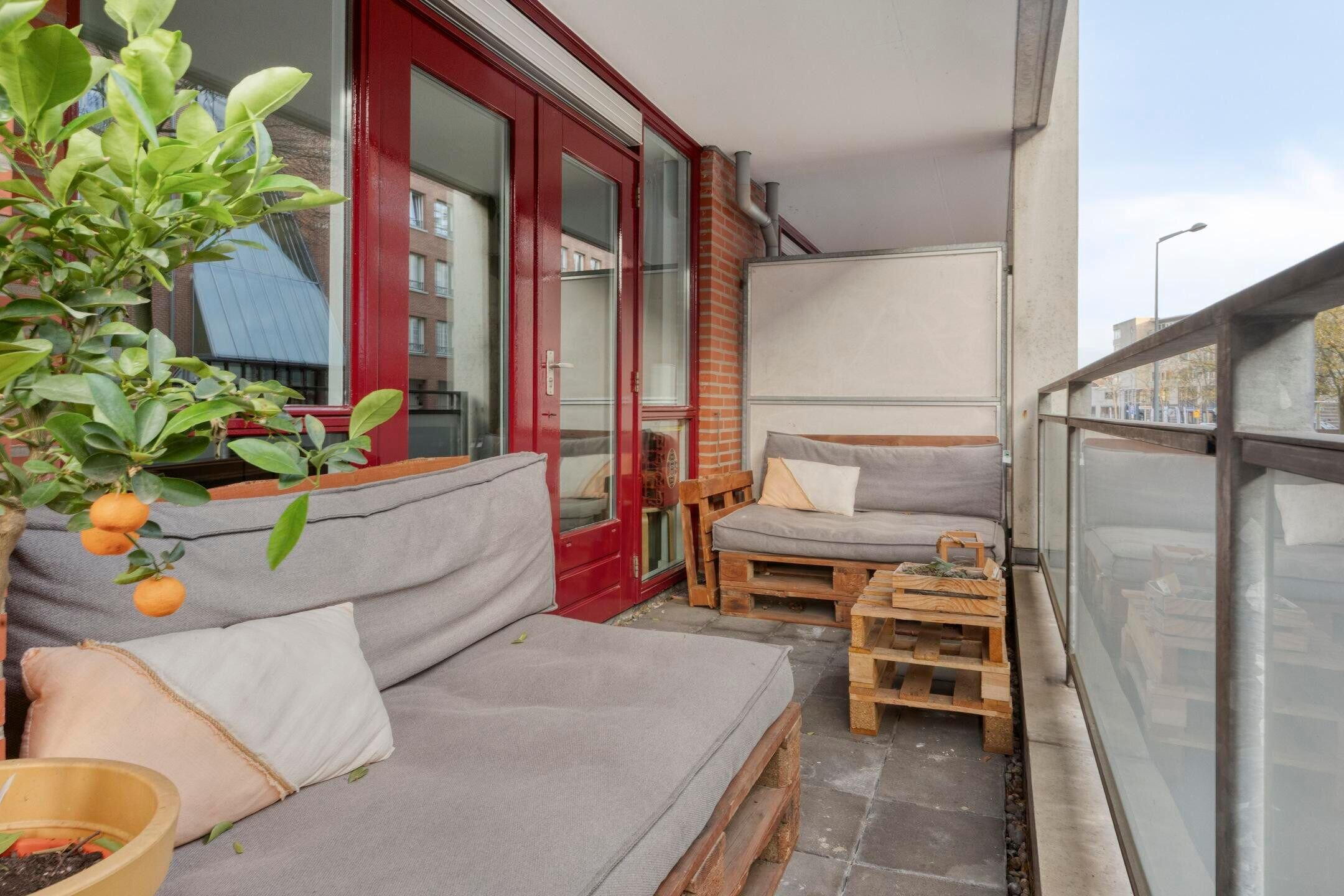 Openslaande deuren in de woonkamer geven toegang tot het circa 10.6 m2 grote balkon op het zonnige zuiden. Dit is een fijne plek om gezellig samen buiten te zitten, te borrelen en een hapje te eten. Dat wordt genieten!