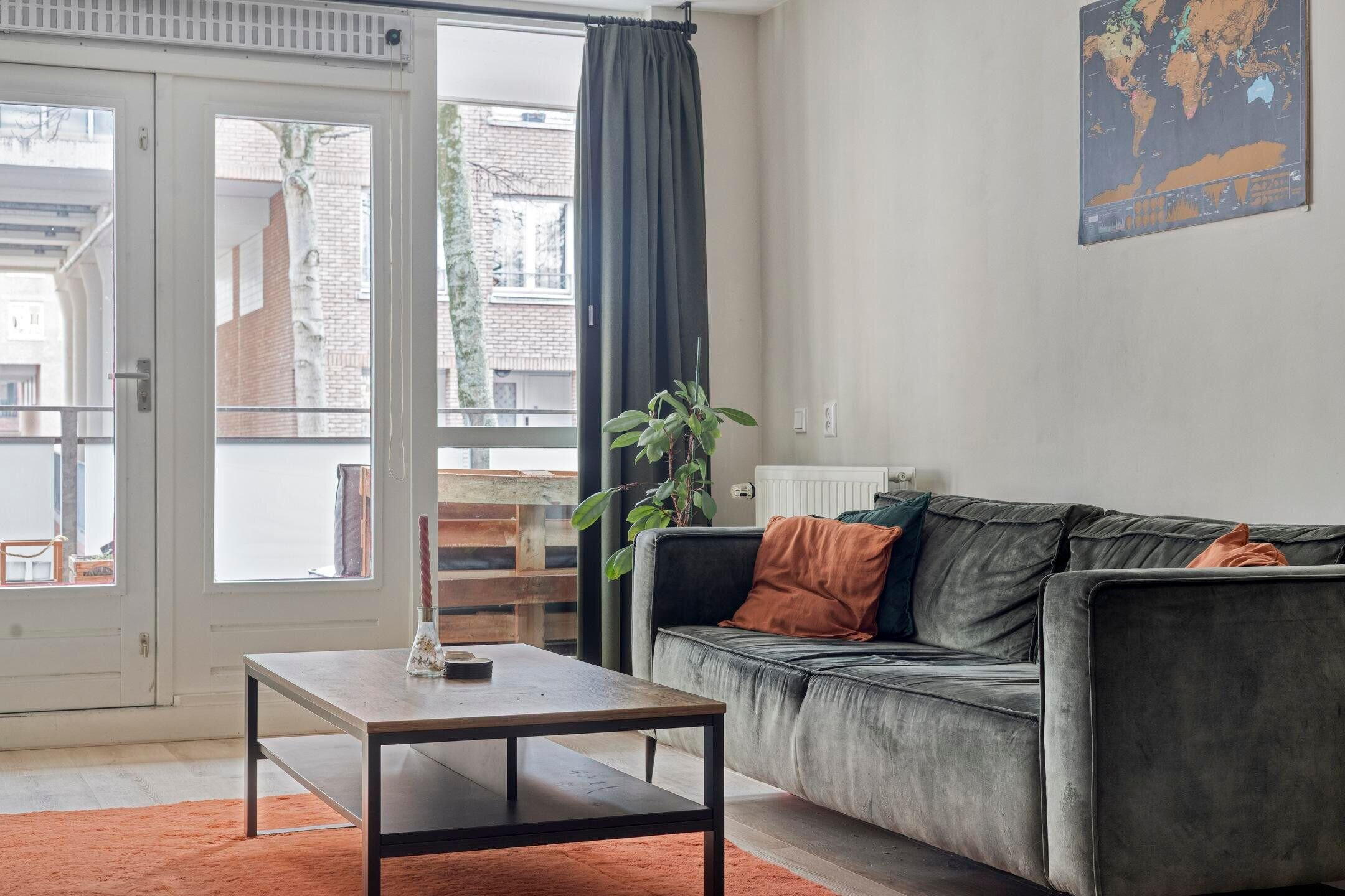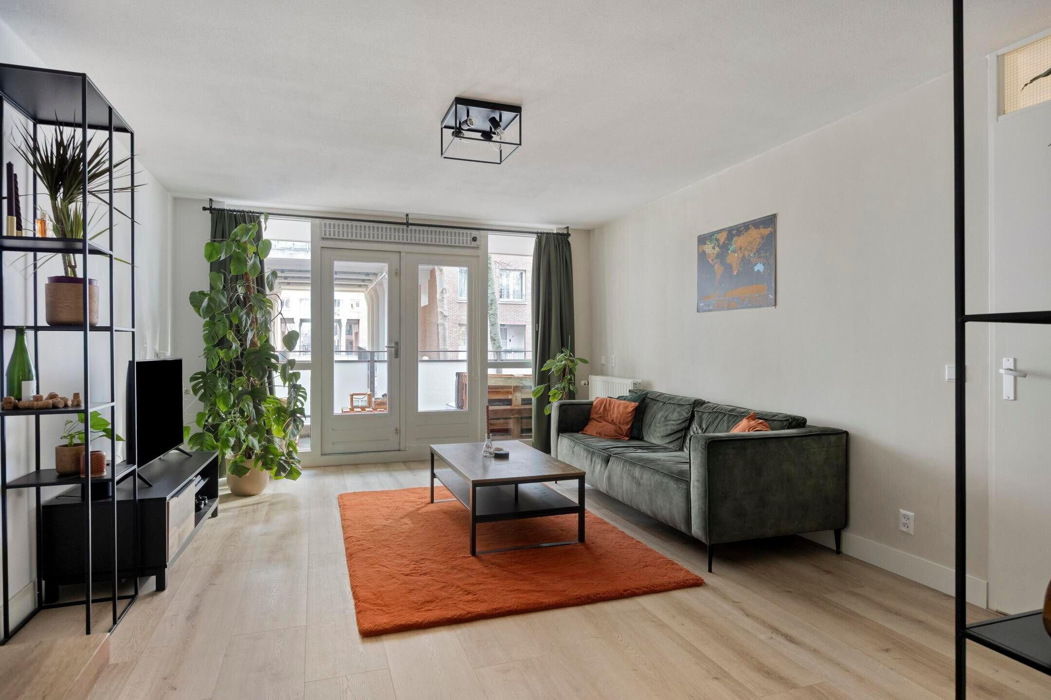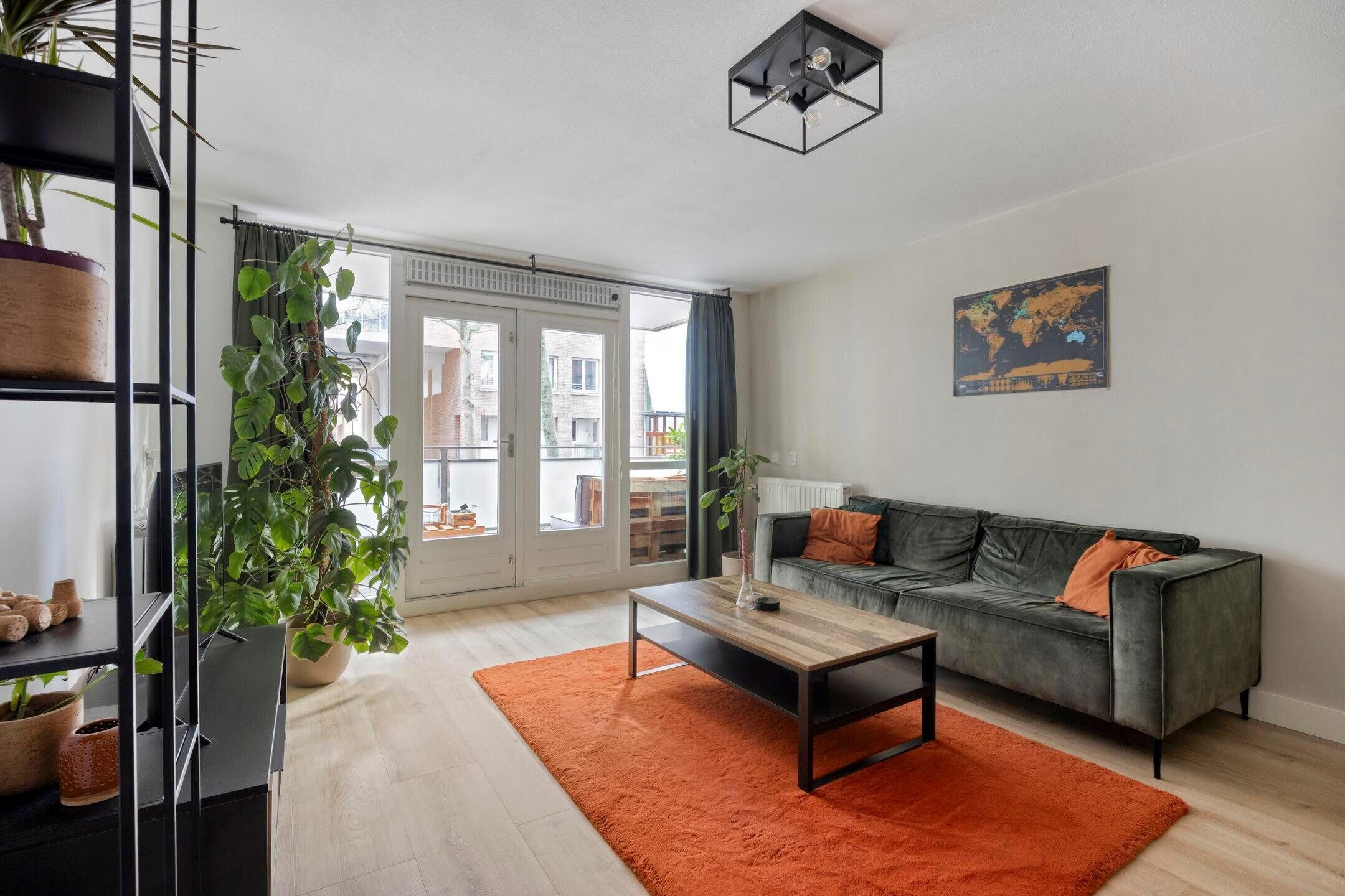 Openslaande deuren in de woonkamer geven toegang tot het circa 10.6 m2 grote balkon op het zonnige zuiden. Dit is een fijne plek om gezellig samen buiten te zitten, te borrelen en een hapje te eten. Dat wordt genieten!