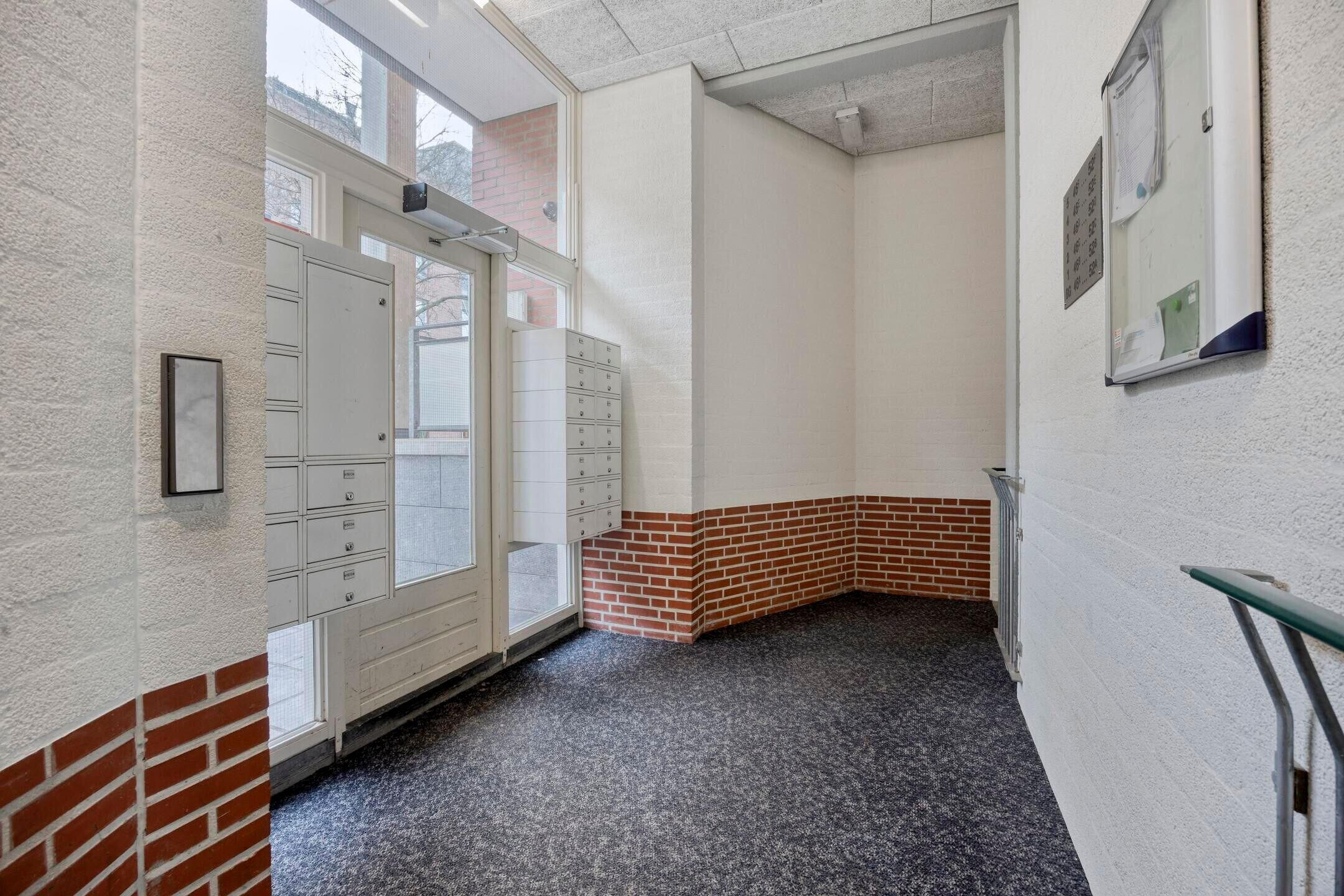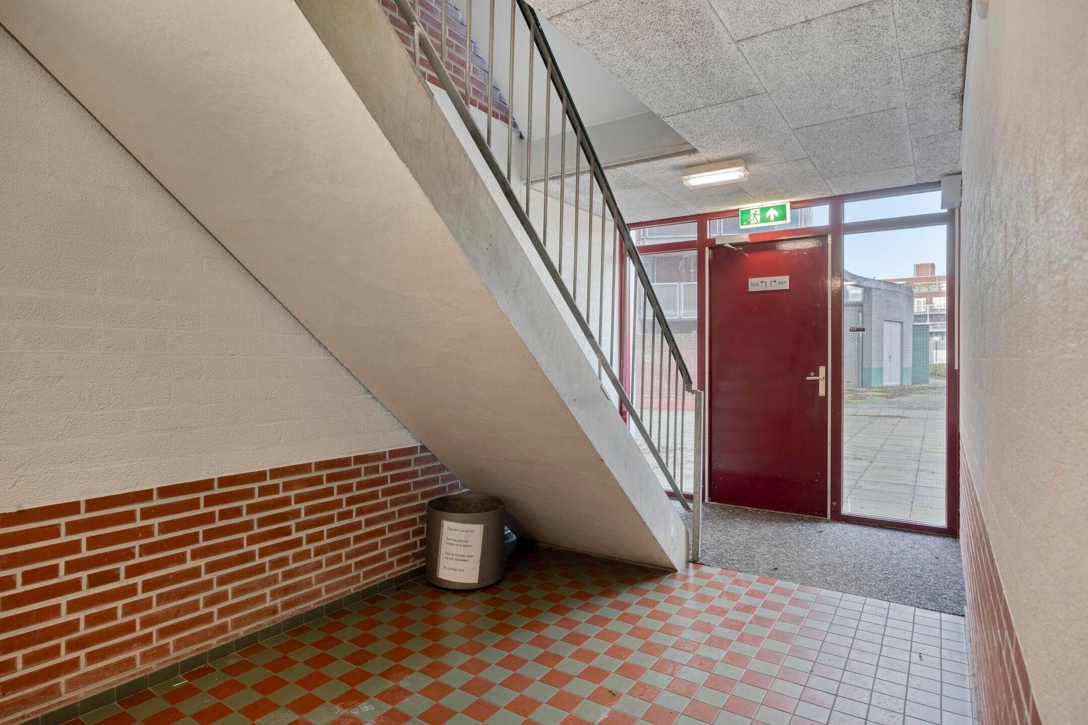 Aan de kant van de Sphinxlunet is de gezamenlijke entree, met de brievenbussen en het bellentableau. Eenmaal binnen loop je naar de achterzijde van het gebouw, en vervolgens naar de voordeur van nummer 52a. Voordat je bij het appartement naar binnen gaat, heb je de kans om naar de afsluitbare binnentuin te kijken.