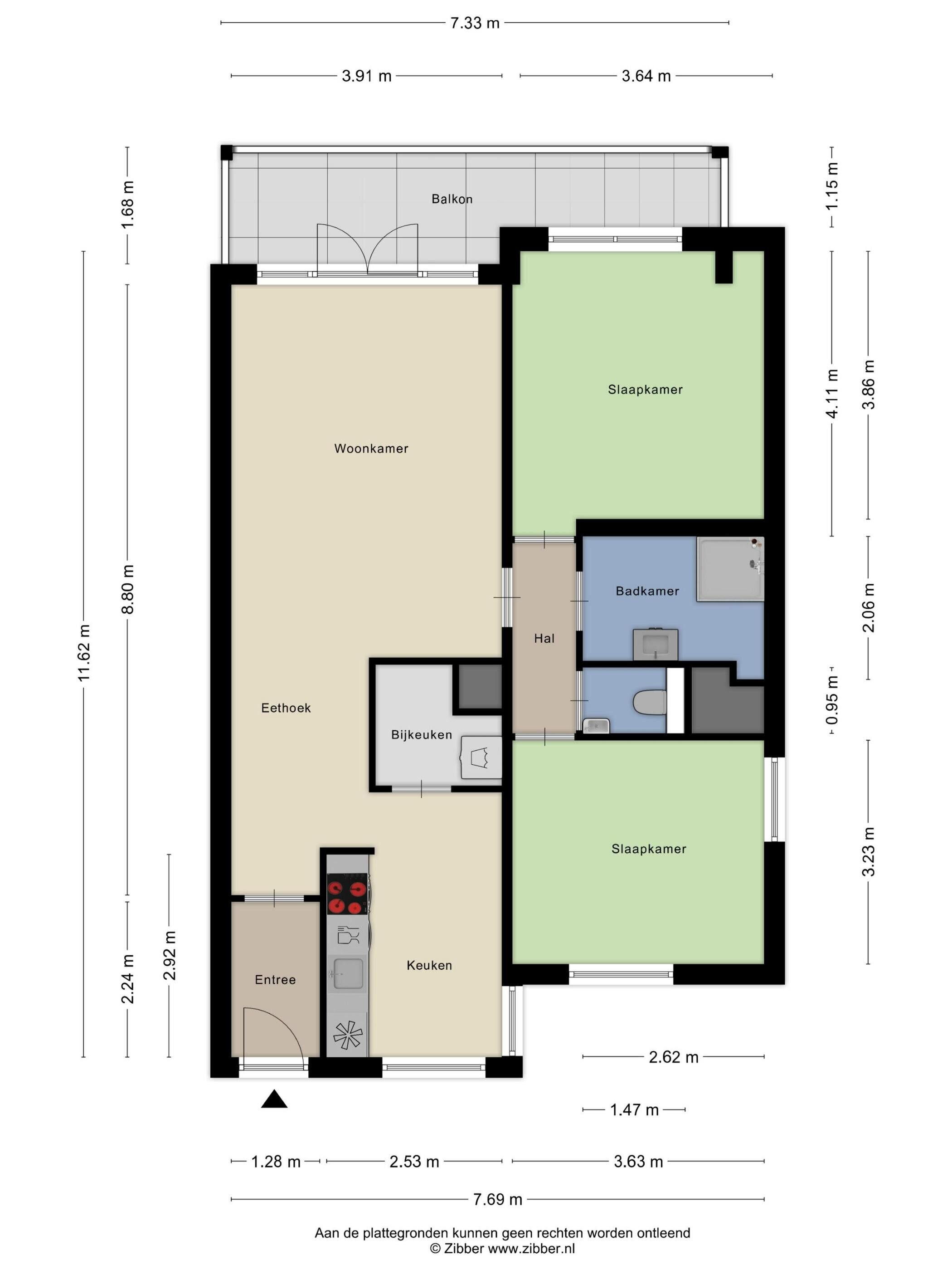- 3 kamers (2 slaapkamers)
